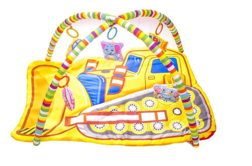 A színes játszószőnyegre csörgők ,játékok függeszthetők fel sokféle variációban.
