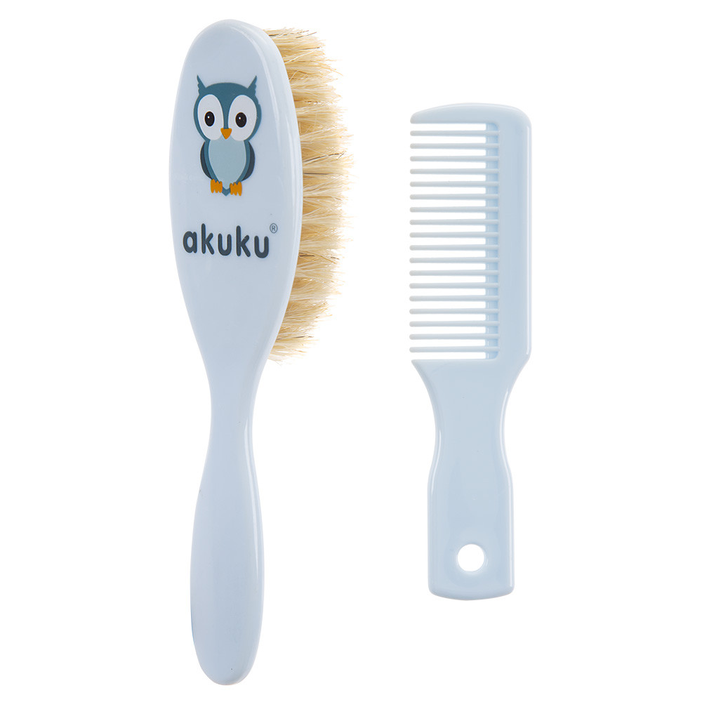Akuku fésû és kefe természetes sörtékkel Bagoly kék