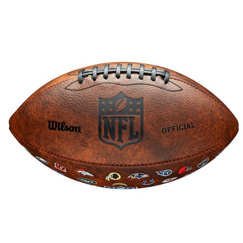 32 csapatlogóval ellátott, retro kinézetű minőségi kompozit amerikai focilabda.
