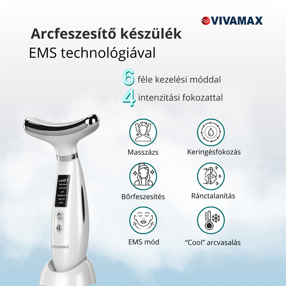 A készülék mikrovibrációs funkció, LED fotonterápia, hidegterápia és EMS alkalmazásával arcbőrét üdébbé varázsolhatja, továbbá hozzájárulhat a megereszkedett bőr feszesebbé tételéhez, a ráncok mélységének csökkentéséhez és kialakulásuknak megelőzéséhez, a bőrmegújulás elősegítéséhez és a kollagéntermelés serkentéséhez is. Alkalmazhatja arcán és nyakán egyaránt. Méretéből és akkumulátoros kialakításából adódóan könnyedén hordozható, így otthonában, kényelmesen a kanapén ülve vagy utazás közben használhatja. A készülék ergonomikus és áramvonalas kialakítása pedig kényelmes és biztonságos fogást biztosít a kezelések során.
