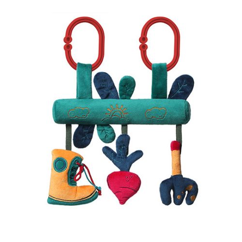- A játékhíd formájának köszönhetően rögzíthető autósüléshez, babakocsihoz vagy kiságyhoz.