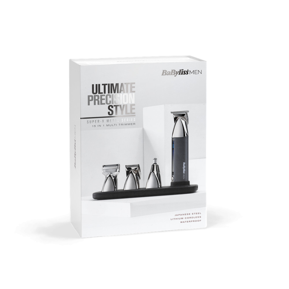 BaByliss MT996E Super-X Metal 15az1-ben, arc- és testszőrtelenítő készlet, metál ezüst