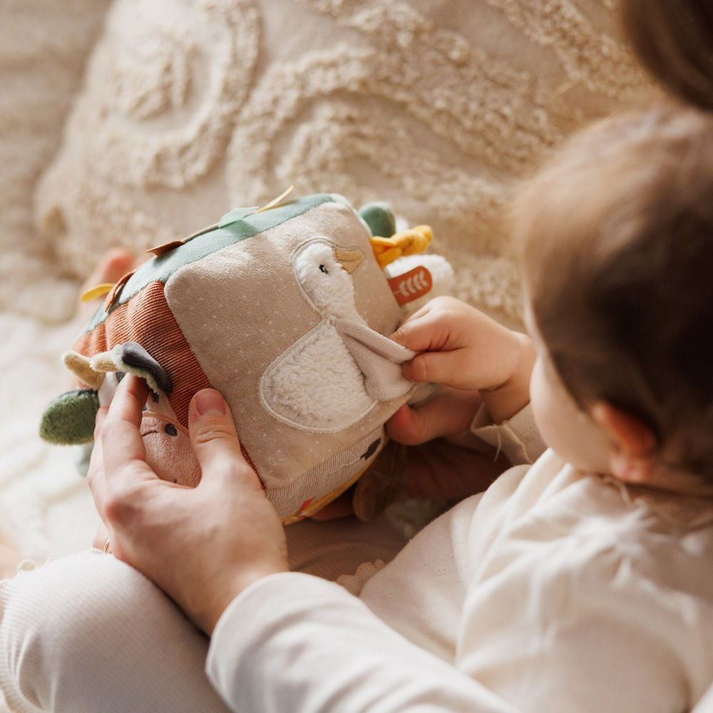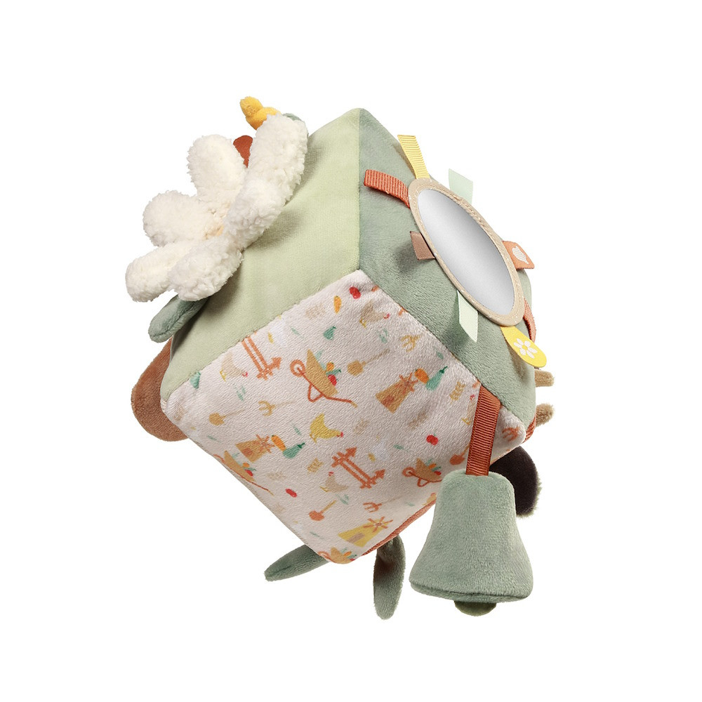 A multifunkcionális játékkocka minden oldala olyan elemeket rejt, amelyeket a kicsi önállóan felfedezhet. A farm ihlette részletek vonzzák a szemet és serkentik a képzeletet. A kocka hosszú idõre leköti a kicsi figyelmét.
