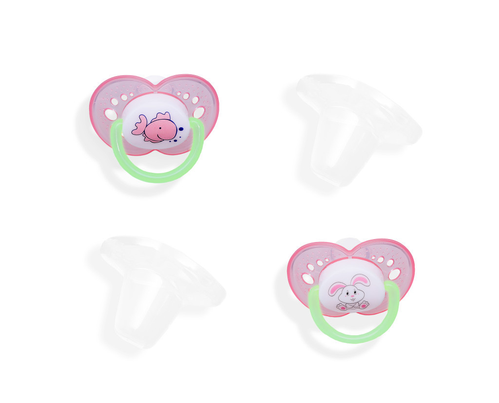 Kiváló minőségű 2db-os ortodontikus, BPA mentes, anatómiai formájú, szilikon játszócumi, védő kupakkal 0-6 hónapos korig, sötétben világító karikával. Egyedi kedves figurákkal, három különböző színekben kapható.
