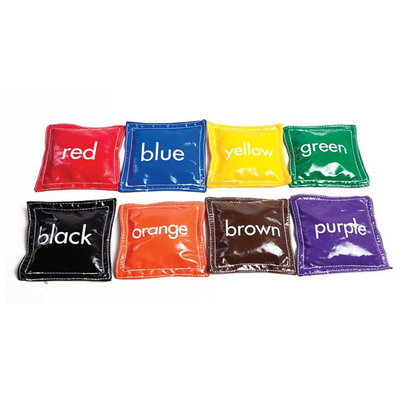 Színes, angol és spanyol feliratos babzsák.