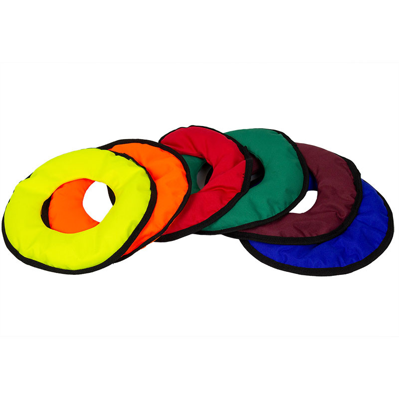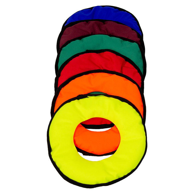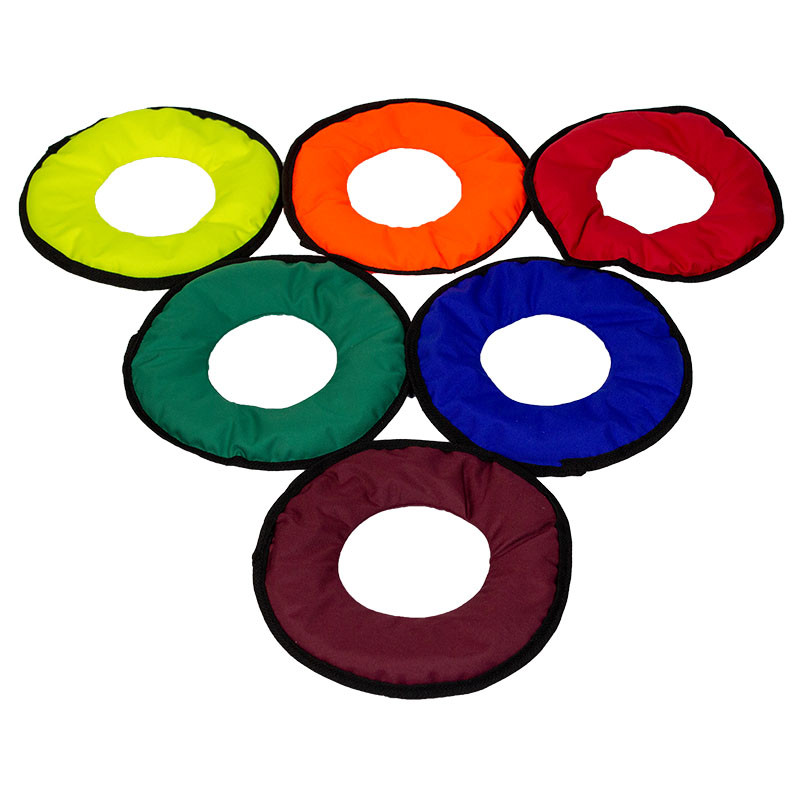 A szett hat különböző színű karika formájú babzsákot tartalmaz.