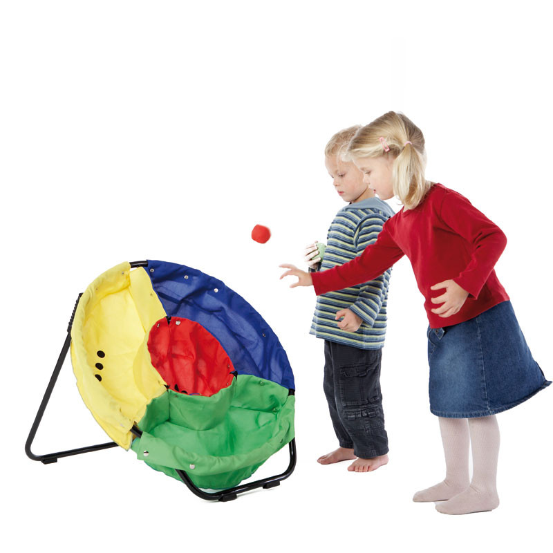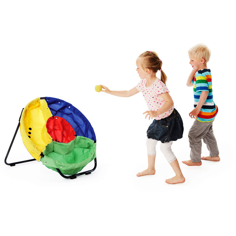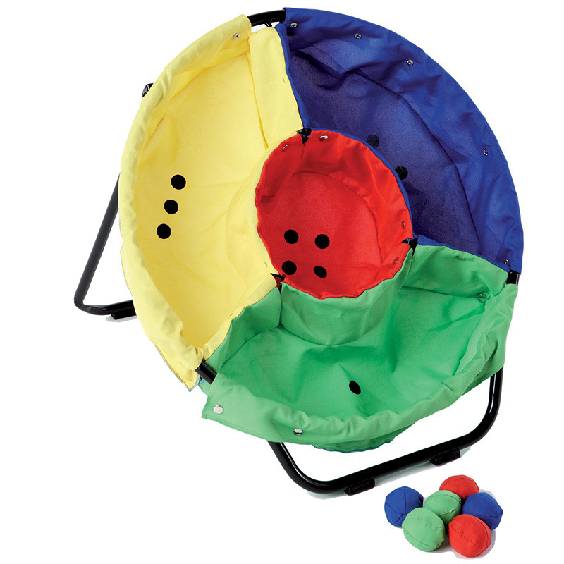 Célbadobó játékFunkcionális szerkezet minőségi anyagokból elegáns design-nal. A nagy állványra szerelt poliészter zsák négy különböző színű, melyek pontszámokat jelölnek. A célbadobó játékhoz jár 6 puha labda.