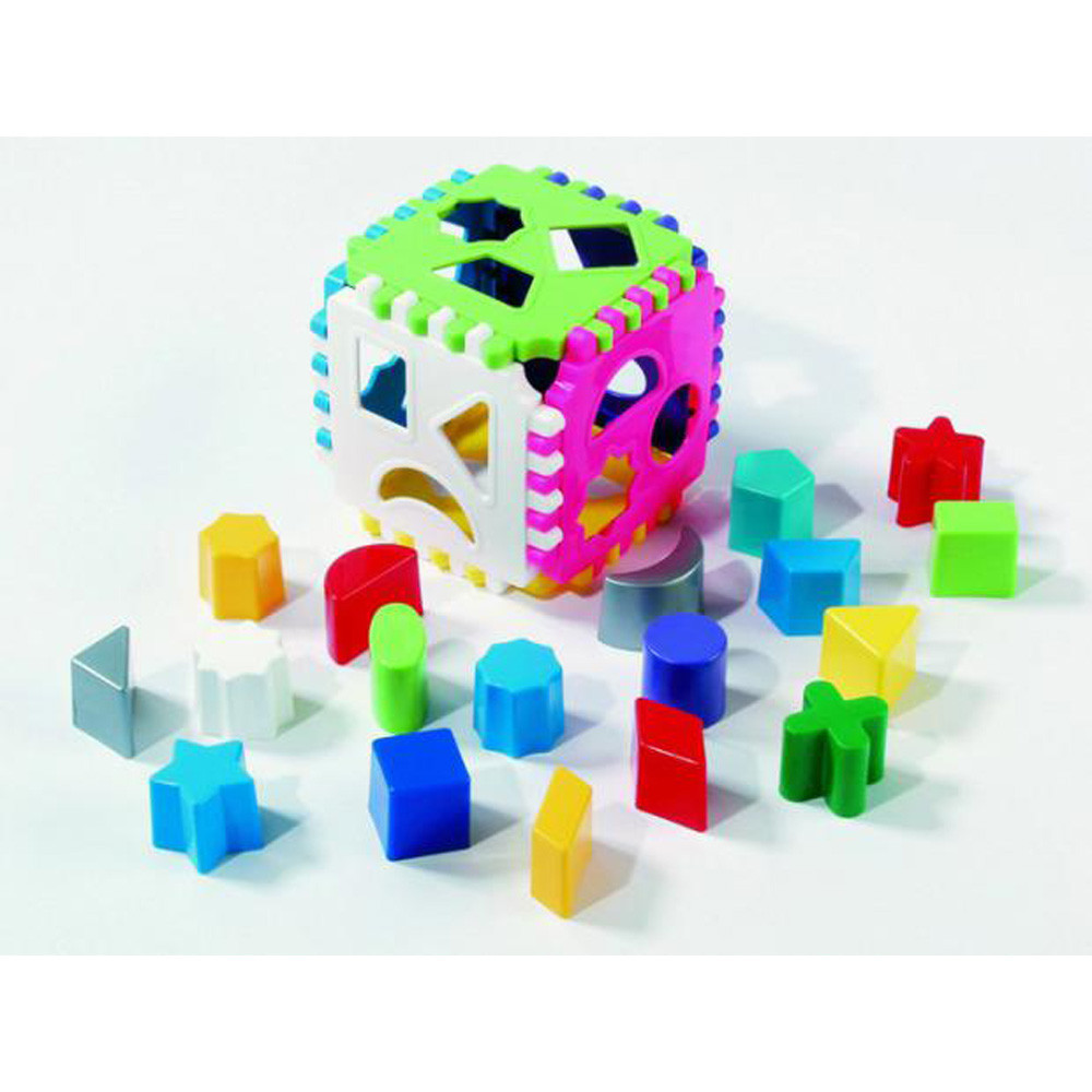 Csodakocka babáknak - összeépíthetõ színes oldallapokból álló kocka, rajta különbözõ forma kivágások - klasszikus forma felismerõ játék, be kell helyezni a kis elemeket a megfelelõ nyíláson.