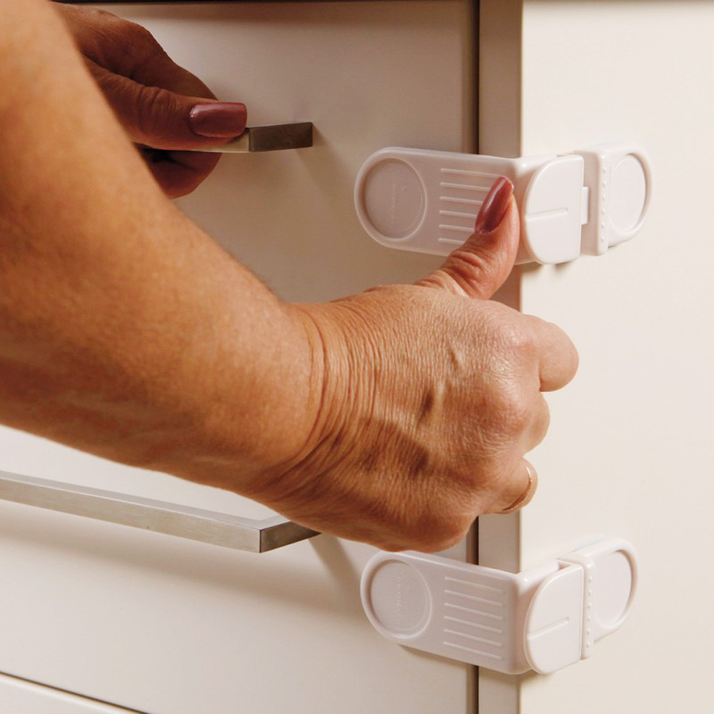 A fiók/szekrény külsõ oldalára ragasztható zár, amely megakadályozza, hogy a gyermek kinyissa azt.