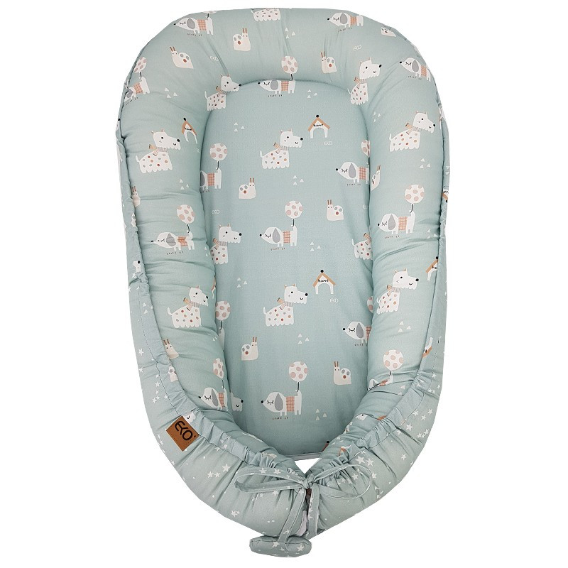 EKO Kétszínű pamut babafészek Dogs Stars Mint 90x60 cm