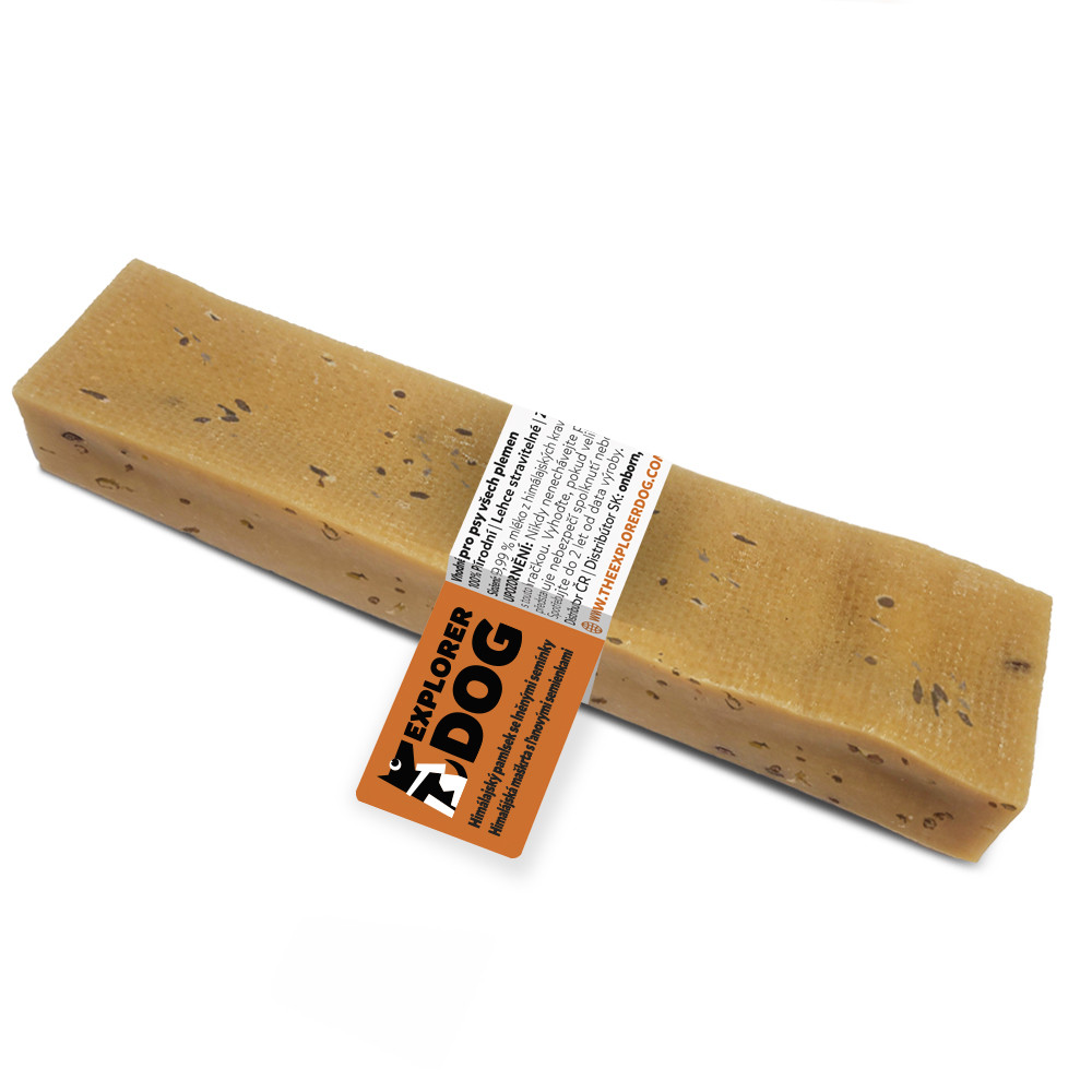 A sajtos fogtisztító rudak lenmaggal kemény, egészséges és természetes jutalomfalatok kutyáknak, amelyek támogatják a foghigiéniát és segítenek eltávolítani a fogkövet. Ezek a természetes sajtos jutalomfalatok könnyen emészthetők, nem tartalmaznak laktózt, glutént vagy tartósítószereket. Összetételüknek és keménységüknek köszönhetően ideálisak minden kutyának, kortól, mérettől vagy fajtától függetlenül. A himalájai sajtok, amelyekből ezek a jutalomfalatok készülnek, szabadon tartott himalájai tehenek tejéből származnak. Az előállítási folyamat a tej egy órás főzésével kezdődik, hogy eltávolítsák az összes zsírt és biztosítsák a pasztörizálást. Ezután egy kis sót és lime levet (összesen csak 0,01%) adnak hozzá az alvadáshoz. Ezt követi a sajt préselése 2-3 napig, hogy eltávolítsák a nedvességet. A sajttömböket ezután megfelelő méretű darabokra vágják és 20-30 napig füstölőben szárítják, ami keménységet és finom, füstös ízt ad nekik.A himalájai jutalomfalatok rágásának előnyei:Természetes összetétel: Tejből (99,99%) készült, sóval, lime levével és lenmaggal, amelyeket a tejhez adnak. A tej szabadon tartott himalájai tehenektől származik.Egészséges és tápláló: Tartósítószerek, glutén és laktóz nélkül. D, D2, E, A vitaminokat, foszfort, kalciumot, nátriumot, káliumot, cinket és vasat tartalmaz.Könnyen emészthető: A természetes fehérjetartalomnak köszönhetően ezek a jutalomfalatok könnyen emészthetők.A fogak egészségének támogatása: A jutalomfalat keménysége segíti a fogak tisztítását rágás közben, ami csökkenti a lepedék és a fogkő mennyiségét.Minden méretű kutyának alkalmas: Kölyökkutyáktól a nagy kutyákig.Ajánlott jutalomfalat méret a kutya súlya alapján:kutya súlya 5 kg-ig – méret S – jutalomfalat súlya 25-40 gkutya súlya 5-10 kg – méret M – jutalomfalat súlya 60-85 gkutya súlya 10-15 kg – méret L – jutalomfalat súlya 100-120 gkutya súlya 15-20 kg – méret XL – jutalomfalat súlya 130-150 gkutya súlya 20 kg felett – méret XXL – jutalomfalat súlya 155-185 gSoha ne hagyja a kutyát egyedül ezzel a játékkal. Dobja el, ha a játék mérete lenyelési vagy fulladási veszélyt jelent.Szállító címe: onborn, s.r.o., Drahobejlova 2515/18, 190 00 Prága
