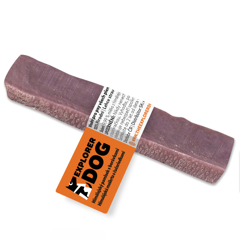 A sajt és áfonya fogtisztító rudak kemény, egészséges és természetesjutalomfalatok kutyáknak, amelyek támogatják a foghigiéniát és segítenek eltávolítania fogkövet. Ezek a természetes sajtfalatok könnyen emészthetők,nem tartalmaznak laktózt, glutént vagy tartósítószereket. Összetételüknek éskeménységüknek köszönhetően ideálisak minden kutya számára, kortól, mérettől vagyfajtától függetlenül. A himalájai sajtok, amelyekből ezek a falatok készülnek,szabadon tartott himalájai tehenek tejéből származnak. A gyártási folyamataz órákig tartó tejfőzéssel kezdődik, hogy eltávolítsák az összes zsírt és biztosítsáka pasztőrözést. Ezután egy kevés sót és lime levet adnak hozzá (összesen csak0,01%), hogy kicsapódjon. Ezt követi a sajt préselése 2-3 napig, hogyeltávolítsák a nedvességet. A sajttömböket ezután megfelelő méretű darabokravágják és 20-30 napig füstölőben szárítják, ami keménységet és enyhe,füstös ízt ad nekik.A himalájai jutalomfalatok rágásának előnyei:Természetes összetétel: Tejből (99,99%) készült,sóval, lime levével és áfonyával, amelyeket a tejhez adnak.A tej szabadon tartott himalájai tehenektől származik.Egészséges és tápláló: Tartósítószer, glutén éslaktózmentes. Tartalmaz D, D2, E, A vitaminokat, foszfort, kalciumot, nátriumot, káliumot,cinket és vasat.Könnyen emészthető: A természetes fehérjetartalomnakköszönhetően ezek a falatok könnyen emészthetők.Fogak egészségének támogatása: A falat keménysége segíta fogak tisztításában rágás közben, ami csökkenti a lepedék ésa fogkő mennyiségét.Minden méretű kutyának alkalmas: Kölyökkutyáktól anagy kutyákig.Ajánlott falatméret a kutya súlya alapján:kutya súlya 5 kg-ig – méret S – falat súlya 25-40 gkutya súlya 5-10 kg – méret M – falat súlya 60-85 gkutya súlya 10-15 kg – méret L – falat súlya 100-120 gkutya súlya 15-20 kg – méret XL – falat súlya 130-150 gkutya súlya 20 kg felett – méret XXL – falat súlya 155-185 gSoha ne hagyja a kutyát egyedül ezzel a játékkal. Dobja el, ha a játék méretelenyelés vagy fulladás veszélyét jelenti.Szállító címe: onborn, s.r.o., Drahobejlova 2515/18, 19000 Prága