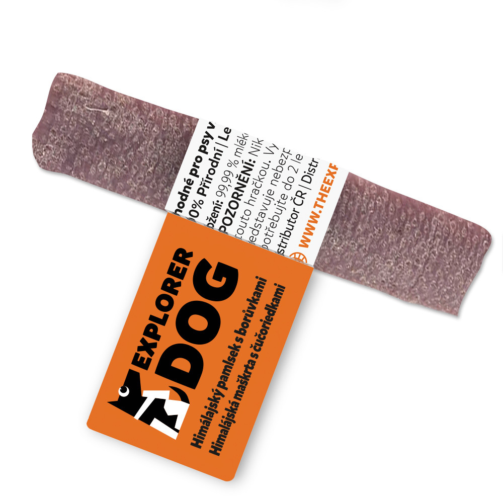 A sajt és áfonya fogtisztító rudak kemény, egészséges és természetesjutalomfalatok kutyáknak, amelyek támogatják a foghigiéniát és segítenek eltávolítania fogkövet. Ezek a természetes sajtfalatok könnyen emészthetők,nem tartalmaznak laktózt, glutént vagy tartósítószereket. Összetételüknek éskeménységüknek köszönhetően ideálisak minden kutya számára, kortól, mérettől vagyfajtától függetlenül. A himalájai sajtok, amelyekből ezek a falatok készülnek,szabadon tartott himalájai tehenek tejéből származnak. A gyártási folyamataz órákig tartó tejfőzéssel kezdődik, hogy eltávolítsák az összes zsírt és biztosítsáka pasztőrözést. Ezután egy kevés sót és lime levet adnak hozzá (összesen csak0,01%), hogy kicsapódjon. Ezt követi a sajt préselése 2-3 napig, hogyeltávolítsák a nedvességet. A sajttömböket ezután megfelelő méretű darabokravágják és 20-30 napig füstölőben szárítják, ami keménységet és enyhe,füstös ízt ad nekik.A himalájai jutalomfalatok rágásának előnyei:Természetes összetétel: Tejből (99,99%) készült,sóval, lime levével és áfonyával, amelyeket a tejhez adnak.A tej szabadon tartott himalájai tehenektől származik.Egészséges és tápláló: Tartósítószer, glutén éslaktózmentes. Tartalmaz D, D2, E, A vitaminokat, foszfort, kalciumot, nátriumot, káliumot,cinket és vasat.Könnyen emészthető: A természetes fehérjetartalomnakköszönhetően ezek a falatok könnyen emészthetők.Fogak egészségének támogatása: A falat keménysége segíta fogak tisztításában rágás közben, ami csökkenti a lepedék ésa fogkő mennyiségét.Minden méretű kutyának alkalmas: Kölyökkutyáktól anagy kutyákig.Ajánlott falatméret a kutya súlya alapján:kutya súlya 5 kg-ig – méret S – falat súlya 25-40 gkutya súlya 5-10 kg – méret M – falat súlya 60-85 gkutya súlya 10-15 kg – méret L – falat súlya 100-120 gkutya súlya 15-20 kg – méret XL – falat súlya 130-150 gkutya súlya 20 kg felett – méret XXL – falat súlya 155-185 gSoha ne hagyja a kutyát egyedül ezzel a játékkal. Dobja el, ha a játék méretelenyelés vagy fulladás veszélyét jelenti.Szállító címe: onborn, s.r.o., Drahobejlova 2515/18, 19000 Prága