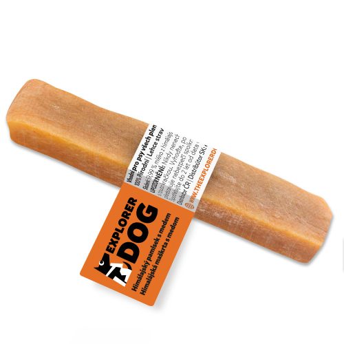 Fogtisztító rágórudak sajtból mézzel, kemények, egészségesek és természetesjutalomfalatok kutyáknak, amelyek támogatják a foghigiéniát és segítenek eltávolítania fogkövet. Ezek a természetes sajtos jutalomfalatok könnyen emészthetők,nem tartalmaznak laktózt, glutént vagy tartósítószereket. Összetételüknek éskeménységüknek köszönhetően ideálisak minden kutyának, kortól, mérettől vagyfajtától függetlenül. A himalájai sajtok, amelyekből ezek a jutalomfalatok készülnek,szabadon tartott himalájai tehenek tejéből származnak. A gyártási folyamatórákig tartó tejfőzéssel kezdődik, hogy eltávolítsák az összes zsírt és biztosítsáka pasztörizálást. Ezután egy kis sót és lime levet (összesen csak0,01%) adnak hozzá a kicsapódáshoz. Ezt követi a sajt préselése 2-3 napig, hogyeltávolítsák a nedvességet. A sajttömböket ezután megfelelő méretű darabokravágják és 20-30 napig füstölőben szárítják, ami keménységet és enyhe,füstös ízt ad nekik.A himalájai jutalomfalatok rágásának előnyei:Természetes összetétel: Tejből (99,99%) készült,sóval, lime levével és mézzel, amelyet a tejhez adnak. A tej szabadon tartotthimalájai tehenekből származik.Egészséges és tápláló: Tartósítószerek, glutén éslaktóz nélkül. D-vitamint, D2-vitamint, E-vitamint, A-vitamint, foszfort, kalciumot, nátriumot, káliumot,cinket és vasat tartalmaz.Könnyen emészthető: A természetes fehérjetartalomnakköszönhetően ezek a jutalomfalatok könnyen emészthetők.Fogegészség támogatása: A jutalomfalat keménységesegít a fogak tisztításában rágás közben, ami csökkenti a lepedék ésa fogkő mennyiségét.Minden méretű kutyának alkalmas: Kölyökkutyáktól anagy kutyákig.Ajánlott jutalomfalat méret a kutya súlya alapján:kutya súlya 5 kg-ig – méret S – jutalomfalat súlya 25-40 gkutya súlya 5-10 kg – méret M – jutalomfalat súlya 60-85 gkutya súlya 10-15 kg – méret L – jutalomfalat súlya 100-120 gkutya súlya 15-20 kg – méret XL – jutalomfalat súlya 130-150 gkutya súlya 20 kg felett – méret XXL – jutalomfalat súlya 155-185 gSoha ne hagyja a kutyát egyedül ezzel a játékkal. Dobja el, ha a játék méretelenyelés vagy fulladás veszélyét jelenti.Szállító címe: onborn, s.r.o., Drahobejlova 2515/18, 19000 Prága