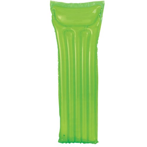 Nagy méretű egyszemélyes felfújható matrac. Erős anyagból készült, a matrac két biztonsági szeleppel és légkamrával ellátott.Külön fejrésszel a kényelmes napfürdőzéshez. A nyár egyik elengedhetetlen kelléke! A strandmatrac alkalmas napozásra a vízparton vagy egy kis lazításra a vízben.A termék zöld színben kapható. Felfújt mérete: 183x69 cm, melyen kényelmesen elfér egy felnőtt is.