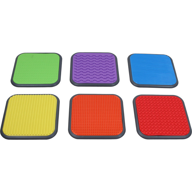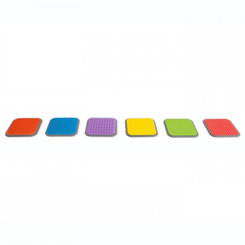 Az Amaya érzékelő korong szettje 6 db csúszásmentes műanyag korongot tartalmaz, különböző tapintású anyagokat utánoznak. A gyerekek így fejleszthetik szenzoros képességeiket. Kézzel és lábbal is egyaránt használható.