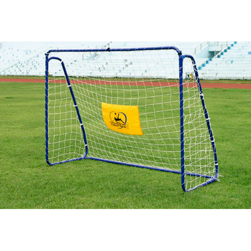 Fémből készült focikapu 213 x 152 x 76 cm méretben. Kertben, szabadtéren is használhatjuk, elsősorban otthoni célra ajánljuk, például a kertbe. Méretei miatt már nagyobb gyerekeknek, felnőtteknek is használható. A lövések gyakorlásához a kapuhoz tartozik egy levehető célzófal is. Az ár tartalmazza a hálót is. A focikapuhoz tartozik a rögzítő szerkezet is, mellyel stabillá tehetjük. Könnyedén összeszerelhető és áthelyezhető.Használati útmutató.Technikai adatok: - Anyaga: Fém - Csövek átmérője: 3,8 cm - Kapu méret: 213 x 152 x 76 cm