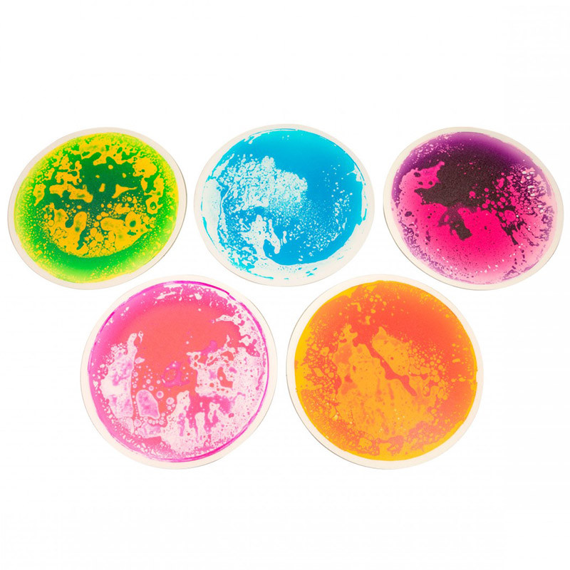 Érzékelés fejlesztés:Szenzoros fejlesztészen belüli, teljesen új élmény a gyerekek számára! Imádni fogják ezeket az aktívan változó, színes folyadékkal töltött elemeket! A "láva" minden érintésnél egy színes örvényt alkotva változik, kavarog.Több órányi szórakozás:Ezek a folyadékkal töltött mezők érintéskor folyamatosan változnak. A gyerekek ráléphetnek, ugrálhatnak vagy akár táncolhatnak is rajta! Rengeteg kreatív módon képesek lekötni őket, akár órákon keresztül is!Tartósság és biztonság:Erős és ellenálló, az újszülöttektől kezdve a gyerekekig, bárki biztonságosan használhatja!Csúszásmentesség:Felső és alsórésze is csúszásmentes felületű. Teteje apró, szemcsézett kialakítású, míg alja jól tapadó, szivacsos rétegű. Kényelmes járni rajta, akár mezítláb is, míg szivacs rétege védi a padlót és tompítja a játék hangját.Tökéletes választás bárkinek, aki gyerekek fejlesztésére keres kreatív, modern módot, vagy pedig csak felszeretné dobni egy kicsit a gyerekszobát! A szett szerkezete:Alsó rész:A folyadékos elemek alja szivacsos, tapadós hatású, így használata biztonságos. A szivacs rugalmassága miatt kényelmes rajta járni, tompítja a padló egyébként kemény érzetét. Ráadásul szivacs rétege a rajta való játék során, akár a kelezkető hangerőt is csökkentheti.Felső rész:Puhán texturált, szemcsés felső része csökkenti csúszósságát. Mikor az elem különböző részeire lépünk, a benne lévő színes folyadék elkezd kavarogni és keveredni. A folyadék színei rendkívül esztétikusak, élénkek.A kép illusztráció! Az elemeket változó színekben szállítjuk!A szett 5 db, 50 cm átmérőjű elemet tartalmaz!