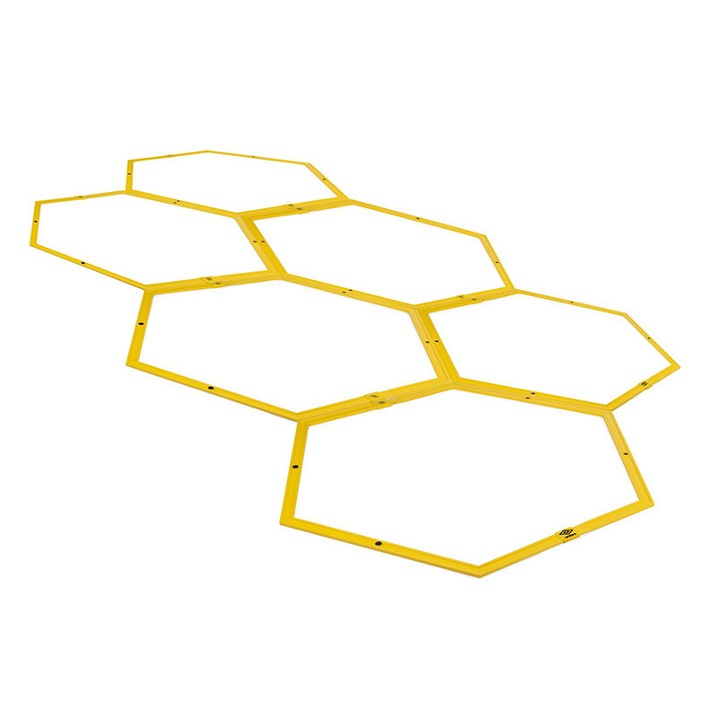 6 darabos hexa koordinációs létra szett.Az elemek tetszőlegesen összeilleszthetőek így különféle akadályok hozhatók létre. Egy vagy akár két sorban is elhelyezhetőek.A koordinációs létra egyik legfontosabb tulajdonsága, hogy arra ösztönzi az idegrendszert, hogy a begyűjtött információk alapján minél több izomcsoportot gyorsabb mozgásra késztessen.Ennek köszönhetően segítségével fejleszthetjük gyorsaságunkat, reakcióidőnket vagy egyensúlyunkat és nagy szerepet játszik a sérülések megelőzését célzó edzésekben is.Használata már gyerekkorban ajánlott, hiszen a lábmunkát és a ritmusérzéket jobb minél fiatalabb korban elkezdeni fejleszteni.Kialakításának köszönhetően rendkívül sokoldalú eszköz, így tökéletes akár teniszezők számára is a robbanékonyság és a pályán való specifikus lábmozdulatok fejlesztésére.Technikai adatok: - Anyag: polipropilén - Átmérő: 57,5 cm - 6 db elem