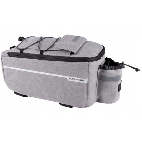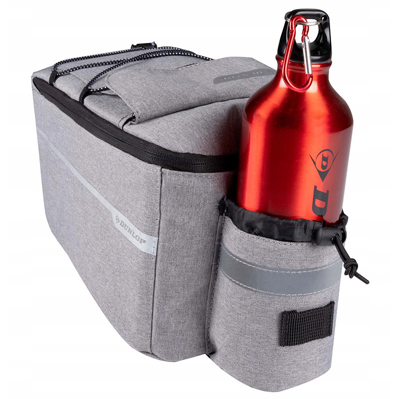 A Dunlop hűtőtáska minden kerékpáros álma.Egy túrához természetesen jól jön, ha magaddal vihetsz harapnivalót és hűsítő italt.A Dunlop kerékpártáska szigetelő belső réteggel rendelkezik, amely minimum -10 foktól maximum 70 fokig melegen vagy hidegen tartja az ételeket és italokat.Ezen kívül a poggyásztartó táska hátulján található egy hűtőrekesz az ivópalack számára, a tetején pedig egy extra tárolórekesz például a telefon számára. A táska maximális térfogata 7 liter, 6 kilogramm.A Dunlop kerékpáros hűtőtáskát egyszerűen és gyorsan rögzítheti kerékpárja csomagtartójára a kerékpártáska alján található két tépőzár segítségével. Ez szilárdan a helyén tartja a csomagtartó táskát a haladás során.Technikai adatok: - Szín: Szürke - Max. teherbírása: 6 kilogramm - Max. tartalom: 7 liter - Elasztikus bungee zsinór - Extra tárolórekesz a tetején - Hűtőrekesz ivópalacknak - Fényvisszaverő matrica a biztonság érdekében - Akasztható hellyel a kerékpárlámpához - Vállszíj - Hőszigetelő belső réteg
