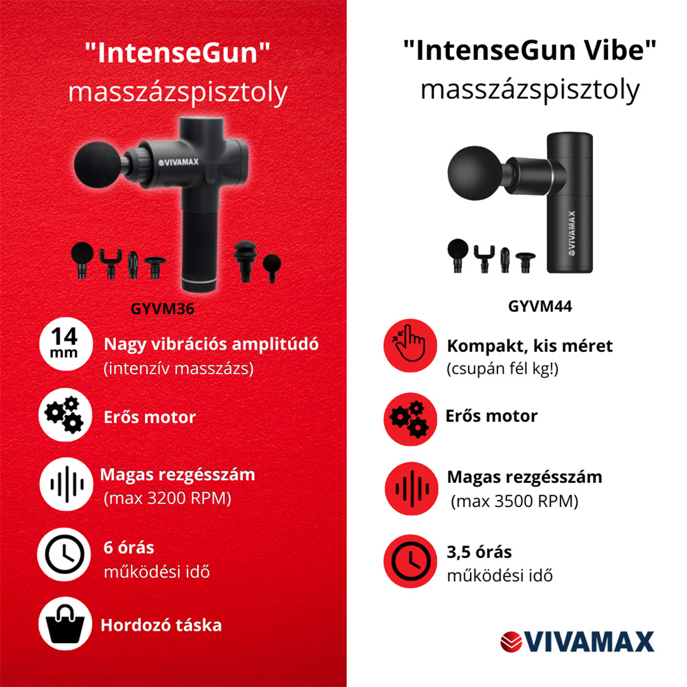Vivamax masszázspisztolyok összehasonlító táblázata
