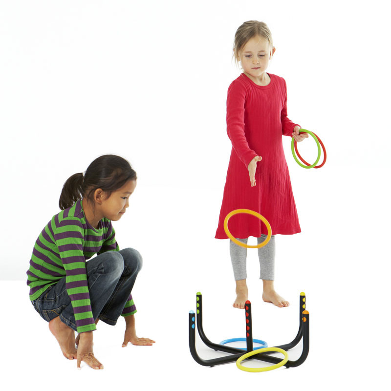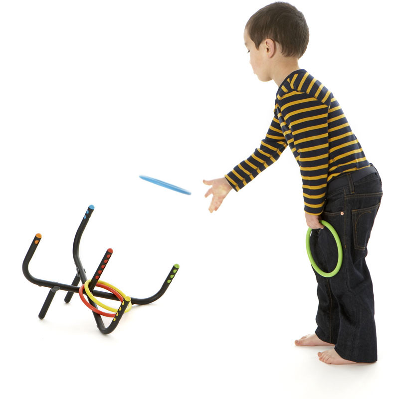 A játék két támaszt is tartalmaz, hogy más szögben helyezhető legyen, hogy a karikadobálást könnyebbé tegye a kisebb gyermekek számára.