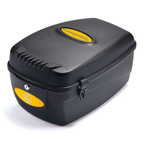Fixen rögzíthető műanyag csomagtartó dobozTechnikai adatok: - Szín: fekete - Kulccsal zárható - Oldalt gyorszárral - Űrtartalom: 13,5 liter - Méret: 22 cm x 26 cm x 44 cm