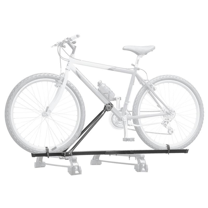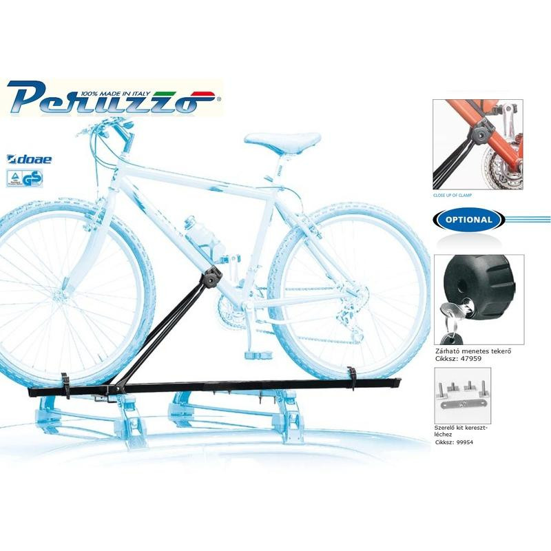Keresztlécre szerelhető kerékpárszállítóTechnikai adatok: - Rögzítés alóvázcső csavarosan szorító pofákkal, kerekek hevederes pánttal - Zárási lehetőség: opcionális: - Anyaga: acél - Szín: fekete