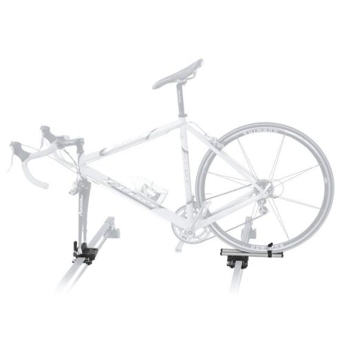 Keresztrúdra rögzíthető kerékpárszállító, 2 részes.Technikai adatok: - Az első rész gyorszárral rögzíti a villát, a hátsó rész alu kerékvályú, hevederes rögzítéssel - Tárcsafékhez is - Szerszám nélkül felszerelhető - Terhelhetősége max. 15 kg