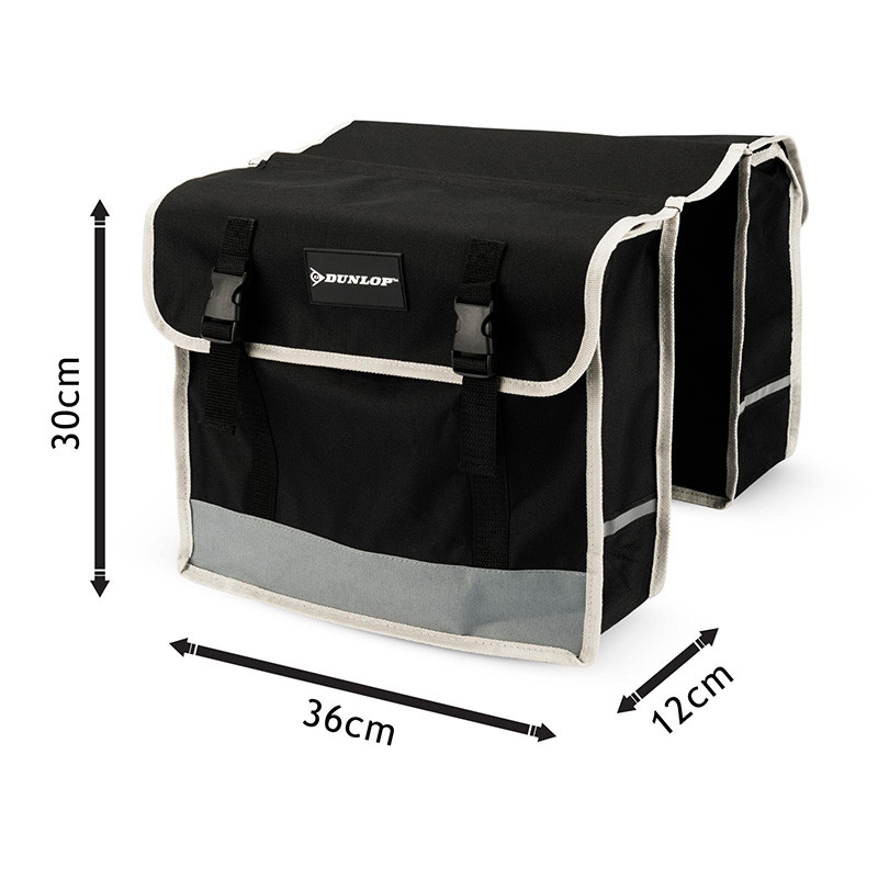 A kétoldalas kerékpár táska tökéletes kiegészítő a hosszú kerékpáros túrákhoz.Poliészterből készül, amely ellenáll a nedvességnek, ennek köszönhetően hatékonyan védi a benne lévő tárgyakat a kedvezőtlen időjárási viszonyoktól.Kívülről fényvisszaverő elemekkel rendelkezik, amelyek sötétedés után jelentősen növelik a közúti biztonságot.Technikai adatok: - Anyaga: poliészter- Tépőzárral rögzítve a csomagtartóra- Méretek: 36 x 12 x 30 cm- Térfogat: kb. 2 x 13l- Alkalmas 13 cm széles csomagtartóhoz