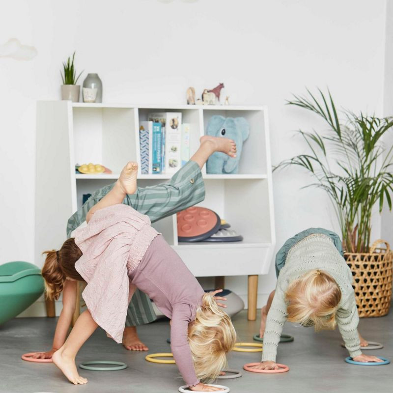A karikáknak rengeteg felhasználási módja van: egyensúlyozhatunk velük a fejünkön, pályákat alakíthatunk ki, melyeken lábujjhegyen végigmehetünk vagy körbetáncolhatjuk, pörgethetjük lábunkon és kezünkön, dobálhatjuk egymásnak, vagy akár lábainkra húzva ugrálhatunk velük. A karikák alkalmazhatóak csoport tevékenységekhez is.A készlet 6 db színes karikát tartalmaz.Technikai adatok: - Méret: 16,4 x 1,32 cm - Anyag: puha mesterséges gumi