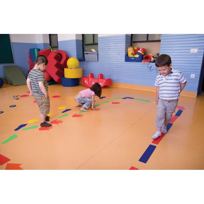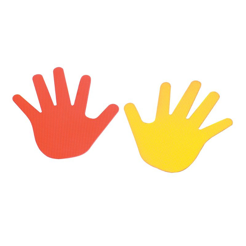 Kéz alakú padlójelölő szett. Fejleszti a gyermekek kombinációs- és mozgáskészségét. Sokféleképpen tudnak vele játszani is, csak a kreativitásukra van bízva. Különböző pályákat lehet tudunk építeni belőle. Csúszásmentes gumi anyagból készült. A szett 20 db kézjelölőt tartalmaz, 10 sárga és 10 piros színben.