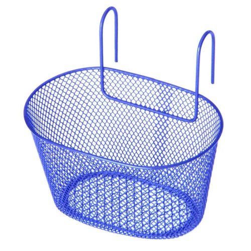 Első kerékpár kosár akasztós, gyerek kerékpárra.Kék, fém.Méretei: 27 x 16 x 14 cm