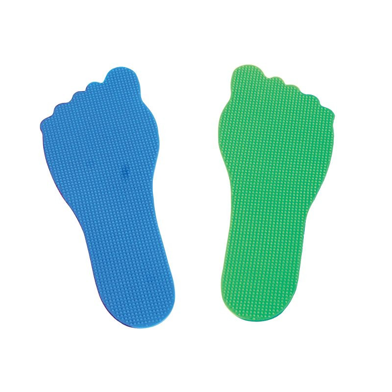 Láb alakú padlójelölő szett. Fejleszti a gyermekek kombinációs- és mozgáskészségét. Sokféleképpen tudnak vele játszani is, csak a kreativitásukra van bízva. Különböző pályákat lehet tudunk építeni belőle. Csúszásmentes gumi anyagból készült. A szett 20 db lábjelölőt tartalmaz, 10 kék és 10 zöld színben.