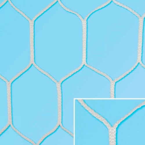 Labdarúgó kapuháló 400x200 cm Hexa csomómentes 3 mm 33070017, olaszTechnikai adatok: - Mérete: 400x200 cm - Anyaga: nylon, UV stabil - Szálvastagság: 3 mm - Széleken erősített - Kültéren is használható! - Színe: FehérMélysége: - Fent: 1 m - Lent: 1 m
