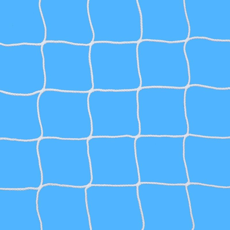 Versenyekre is használható kapuháló 5x2 m-es kapura. UV stabil kültéren is használható, vízálló, gépi kötésű kapuháló. 6 mm-es vastagságának köszönhetően extra tartós hálónak számít. Csomómentes.Technikai adatok: - Lyukbőség: 12x12 cm - Anyaga: 6 mm vastag polipropilén - Mélysége: felül: 1,5 m, alul: 1 m - Szín: fehér