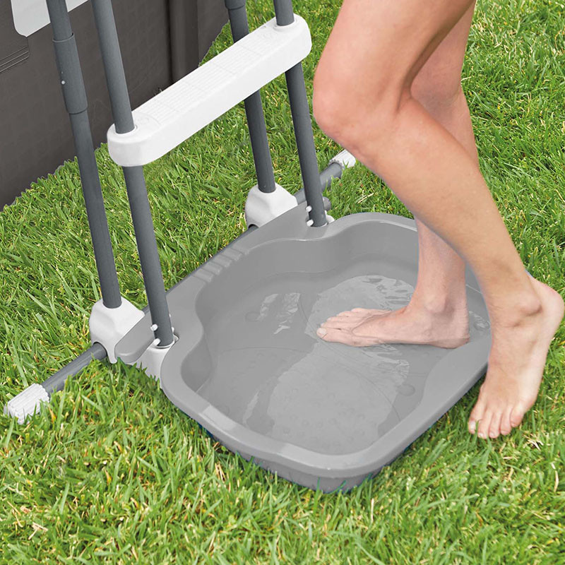 A Lábmosó Intex a medencelétra elé elhelyezhető és ahhoz rögzíthető lábmosó.A medence vizének tisztán tartása érdekében ajánlott a használata belépéskor.Mérete: 56x46 cm, magassága 9 cm. Szürke színben rendelhető.A termék vízzel érintkezik, így higiéniai terméknek minősül és az ÁSZF-ben foglaltak értelmében beépítését, használatát követően nem érvényes rá az elállási jog. Kérjük ezt vegyék figyelembe vásárláskor.Technikai adatok: - Méret: 56x46 cm - Magasság: 9 cm - Csúszásmentes aljzat - Medencelétrához csatlakoztatható