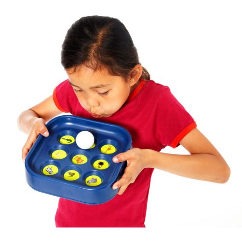 Lottó készségfejlesztő játékKiválóan fejleszti a légzéstechnikát. A játék lényege, hogy egyetlen fújással jutassuk el a pingpong labdát a kilenc állatot mintázó lyukba. Amelyik állatot eltaláltuk, azt letakarhatjuk az alaplapon. Az nyeri a játékot, aki legelőször az összes állatot letakarja.A készlet tartalma:- 22x22 cm- 1 db játéktábla- 1 db kétoldalas feladatkártya- 4 db kétoldalas alaplap- 1 db ping-pong labda- 36 db korong