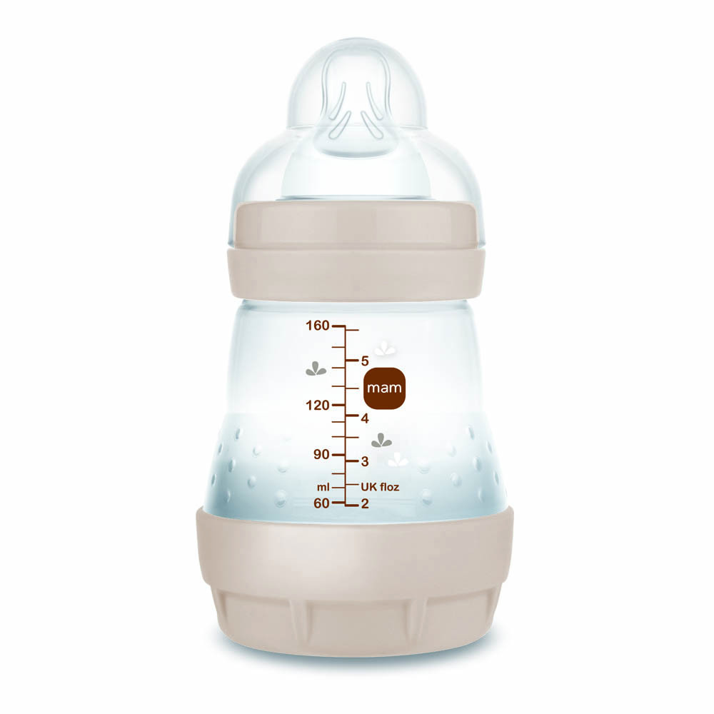 A természet ihlette színekkel és mintákkal ellátott 160 ml-es MAM Anti-Colic Matt Forest az ideális cumisüveg kisbabáknak: a babák saját tempójukban, teljesen ellazulva ihatnak.