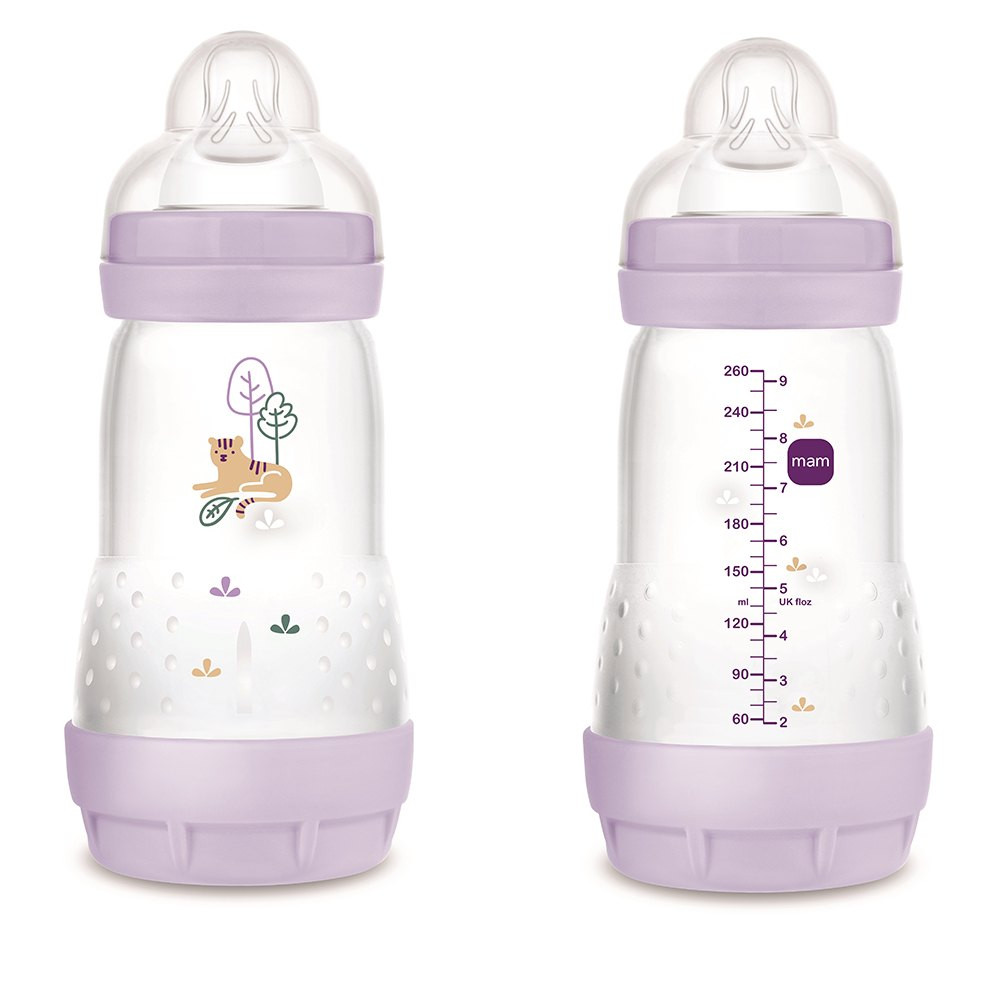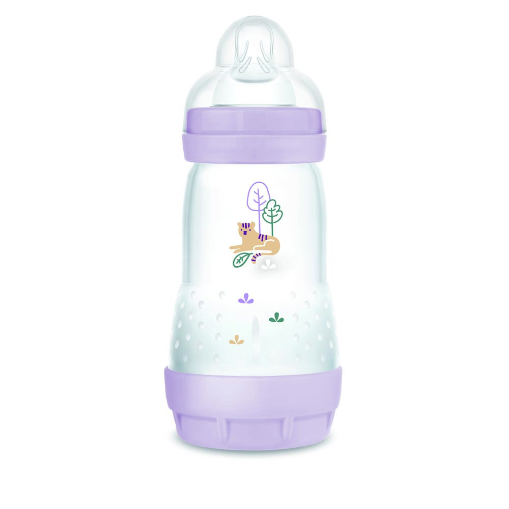 A természet ihlette színekkel és mintákkal ellátott 260 ml-es MAM Anti-Colic Matt Forest az ideális cumisüveg kisbabáknak: a babák saját tempójukban, teljesen ellazulva ihatnak.