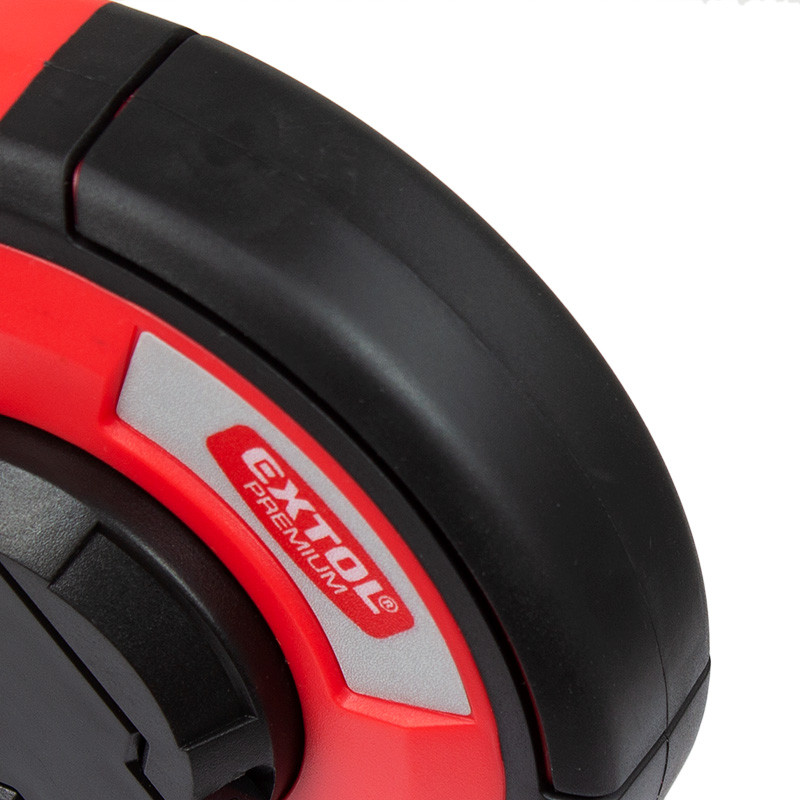 Acél mérőszalag ABS műanyag házzal, csúszásgátló TPR gumis részekkel.
