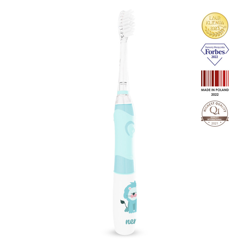 A Neno Fratelli egy elektromos fogkefe, amelyet idősebb gyermekek számára terveztek (6 éves kortól). A Neno Fratelli időzítővel és nejlon sörtékkel van felszerelve, amelyek biztosítják a megfelelő szájhigiéniát. Ezenkívül az innovatív funkcióknak, mint például a LED háttérvilágítás és a színes LED diódák, köszönhetően a mindennapi fogmosás kalanddá válik gyermekének. Segít az egészséges szájhigiéniai szokások kialakításában a gyermeknél, és vonzóbbá teszi a mindennapi rituálét. A helyes technika elengedhetetlen a hatékony fogmosáshoz, még a gyermekeknél is. Mielőtt elkezdené tanítani gyermekét, győződjön meg róla, hogy tudja, hogyan kell a fogakat tisztítani a kor és a fogak fejlődése szerint. Egy másik minőségi tényező a jó teljesítmény. A Neno Fratelli fogkefével biztos lehet benne, hogy a tisztítás precíz lesz, mivel 24 000 rezgést produkál percenként.LED fényA Neno Fratelli fogkefe nyelének felső részébe rejtett fény valódi látványosság. Gyermeke el lesz ragadtatva ettől a szokatlan ingertől fogmosás közben. És lehetősége lesz megvilágítani és ellenőrizni a gyermek szájüregének belsejét.Színes LED diódákA színes LED diódáknak köszönhetően a fogmosás szó szerint varázslatos. A pulzáló fények változó ritmusa miatt az esti rituálé szórakozássá válik, nem pedig unalommá és kötelességgé.Beépített időzítőAz időzítő és a LED háttérvilágítás segít megőrizni gyermeke egészséges és szép mosolyát. A beépített időzítő 2 percet mér, 30 másodpercenkénti szünetekkel, hogy tudja, mikor kell áthelyezni a fogkefét a száj másik részére.VízállóAmikor elektromos fogkefét keres, van egy fontos részlet, amire figyelni kell – a vízállóság. A Neno Fratelli IPX7 vízállósági fokozattal rendelkezik, így nyugodtan leöblítheti a csap alatt anélkül, hogy a víz károsítaná a motort.Nejlon sörtékFogkefe választásakor figyeljen a sörték típusára. A Neno Fratelli finom nejlon sörtékkel rendelkezik. Fő előnyük a higiénia, mivel nem szívják fel a vizet. Ez a tulajdonság megakadályozza a káros mikroorganizmusok és a rothadás növekedését. Elegendően merevek is, hogy ne deformálódjanak.Vidám gyermek dizájnA fogmosás még szórakoztatóbb lesz gyermekének, ha vidám társasága van, mint például egy állatka a fogkefén.TulajdonságokPuhák nejlon sörtékForrás: 1× AAA elem (nem tartozék)Vízállóság: IPX7Rezgések percenként: 24 000Beépített időzítő: 2 perc tisztítás, 30 másodpercenkénti szünetLED háttérvilágításSzínes LED fény rezgés közbenMéretek: 188×19×19 mmSúly: 27 gAjánlott életkor: 6 év+