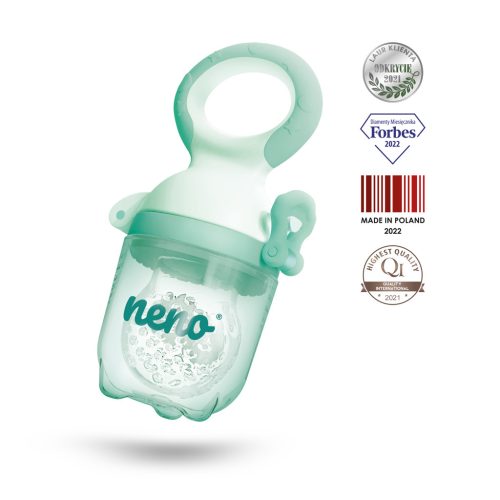 A Neno Frutta egy cumi hálós tartállyal, amelyen keresztül biztonságosan adhatja gyermekének az első gyümölcsöket és zöldségeket. A Frutta megkönnyíti az étel rágásának elsajátítását, miközben csökkenti a fulladás kockázatát. Ezenkívül ideális a gyermek étrendjének bővítésére, és egészséges vitamin- és ásványianyag-bevitelt biztosít a kiegészítő ételek révén.Kényelmes tisztításA szilikon cumi hihetetlenül könnyen tisztítható – egyszerűen mossa le meleg szappanos vízben, hogy eltávolítsa az ételmaradékokat a cumiról. A termék tartós szilikonból készült, és gumifogantyúval rendelkezik, így forró vízben sterilizálható.BiztonságosA Neno Frutta puha és biztonságos szilikonból készült, amely 100% BPA-mentes. Antibakteriális záróval rendelkezik, amely tisztán tartja a szilikon hálót.MultifunkcionálisA Neno cumi egyesíti a rágóka és a cumi funkcióit. A puha szilikon texturált felülettel kombinálva gyengéden nyugtatja a baba ínyét a fogzás során, és a cumi formája segít a babának megszokni az új ételeket, miközben megőrzi a természetes szopási reflexet.TulajdonságokMéretek: 10,4 × 6,3 × 4,5 cmA csomag 3 méretű etető cumit tartalmaz (S, M, L)Hőmérsékleti tartomány: –20°C-100°C
