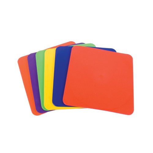 Négyzet alakú padlójelölő szett. Fejleszti a gyermekek kombinációs- és mozgáskészségét. Sokféleképpen tudnak vele játszani is, csak a kreativitásukra van bízva. Különböző pályákat lehet tudunk építeni belőle. Csúszásmentes gumi anyagból készült. A szett 6 db négyzet jelölőt tartalmaz, különböző színekben.