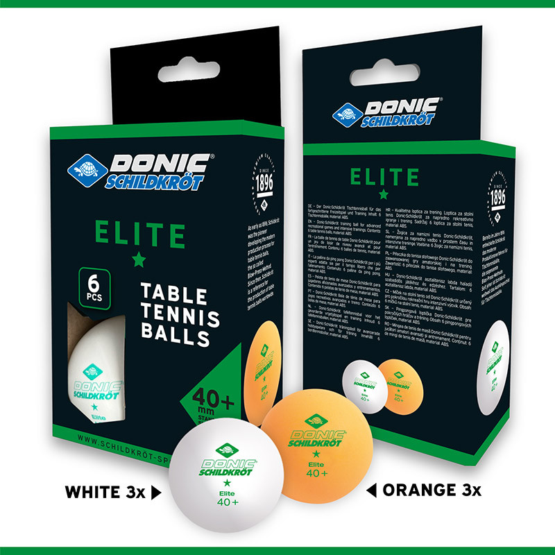 Donic Elite ping-pong labda 1 csillagos 3 db fehér és 3 db narancs.Egyszerű hobbi, szabadidős felhasználásra ajánlott labda 6 darabos kiszerelésben.