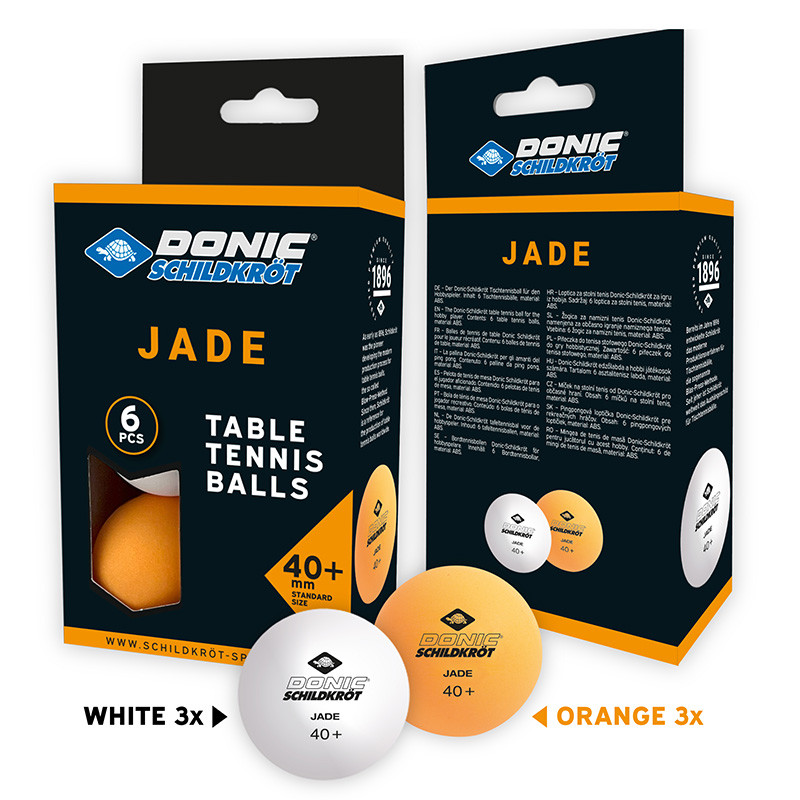 Donic Jade ping-pong labda narancs és fehér színben. Hobbi, szabadidős felhasználásra készült ping-pong labda. A csomag 3 db narancssárga és 3 db fehér, szabvány méretű pingponglabdát tartalmaz.