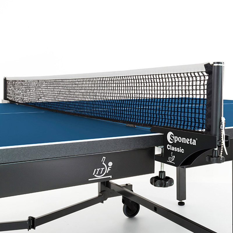 Cégünk a magyarországi hivatalos képviselete a Sponeta márkának!Magas minőségű Sponeta pingpongháló szett. Állítható magasságú, stabil, masszív, műanyag borítású fém rögzítőszerkezettel."Weltmeister" típusú, fekete színű, a hálótartó szerkezethez hasonló, kiváló minőségű pamuthálóval.Technikai adatok: - Állítható magasságú - Pingpongháló méretei: kb. 180x15,2 cm - Pingpongháló anyaga: pamut - Maximum asztalvastagság: 2,5 cm - Nettó súlya: 1,5 kg - Bruttó súlya (csomagolással): 1,7 kg - ITTF minősítettA Sponeta Classic pingpongháló szettel kompatibilis asztalok: - S6-12/13 i, S6-52/53 i, S7-12/13, S7-22/23, S8-36/37, S8-36 w/37 wTovábbi információkért látogassa meg a Sponeta hivatalos magyarországi weboldalát: www.sponeta.hu
