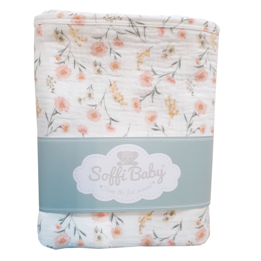 Soffi Baby takaró muszlin dupla virágmintás 70x90cm