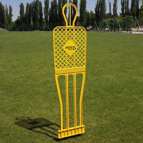 Leszúrható sorfal bábu. Bábu magasság: 180 cmA bábúk rögzítése a földbe 4 db, 12 cm hosszúságú, a bábuk aljába beépített, rozsdamentes tüskével történik. Technikai adatok: - Magasság: 180 cm - Szélesség: kb. 46 cm - Súly: 3,5 kg - Szín: sárga