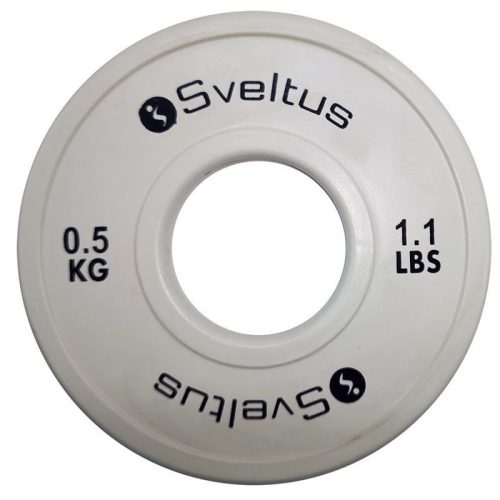 Technikai adatok: - Anyag: gumi, acél - Átmérő: 13,5 cm - Vastagság: 1,25 cm - Súly: 0,5 kg - 50 mm-es súlyzórudakhoz - Szín: fehér